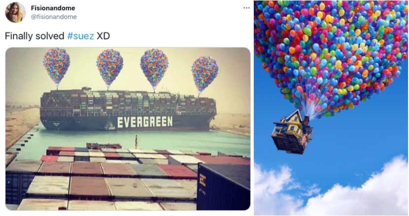Есть шутники, которые предлагают поднять 400-метровый корабль с помощью шариков, как в фильме студии Pixar  "Вверх".