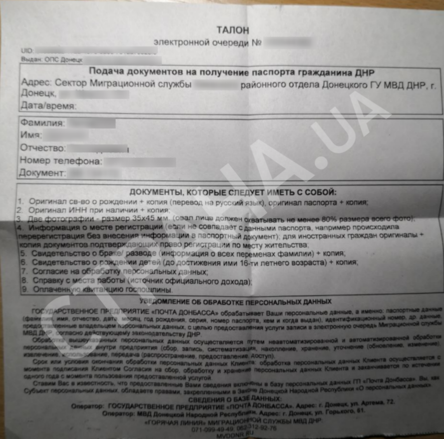 Жители Донецка рассказывают, что талоны на очередь за этим документом теперь стали выдавать с открытой датой. Если раньше указывалось, когда приходить подавать документы (и это занимало от нескольких месяцев до года), то сейчас это может произойти в любой момент.