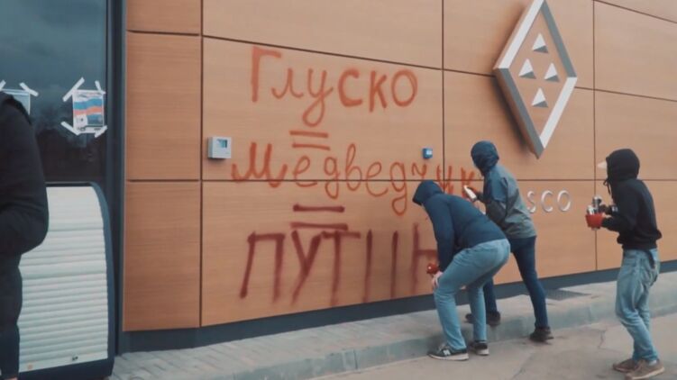 Националисты облили АЗС красной краской, обклеили фасады заправок стикерами, нанесли краской надписи на стены. При этом полиция не реагировала, несмотря на обращение компании к президенту Украины, опубликованное накануне.