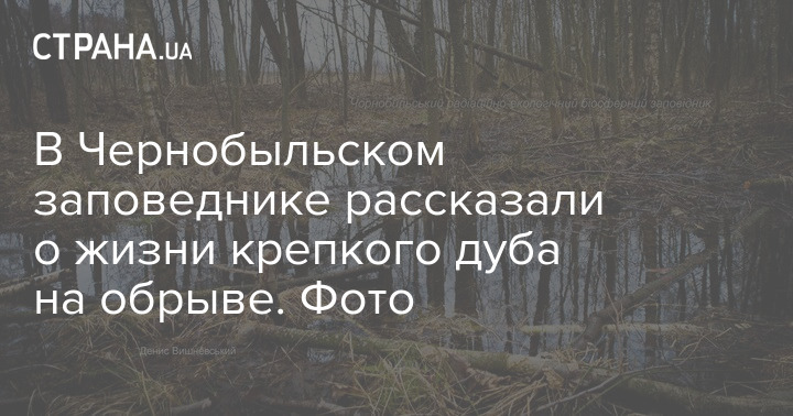 Представители Чернобыльского заповедника показали фотографию дуба, который продолжает расти, несмотря на непогоду и осыпающеюся с обрыва землю. Корни дерева предотвращают возможный обвал.