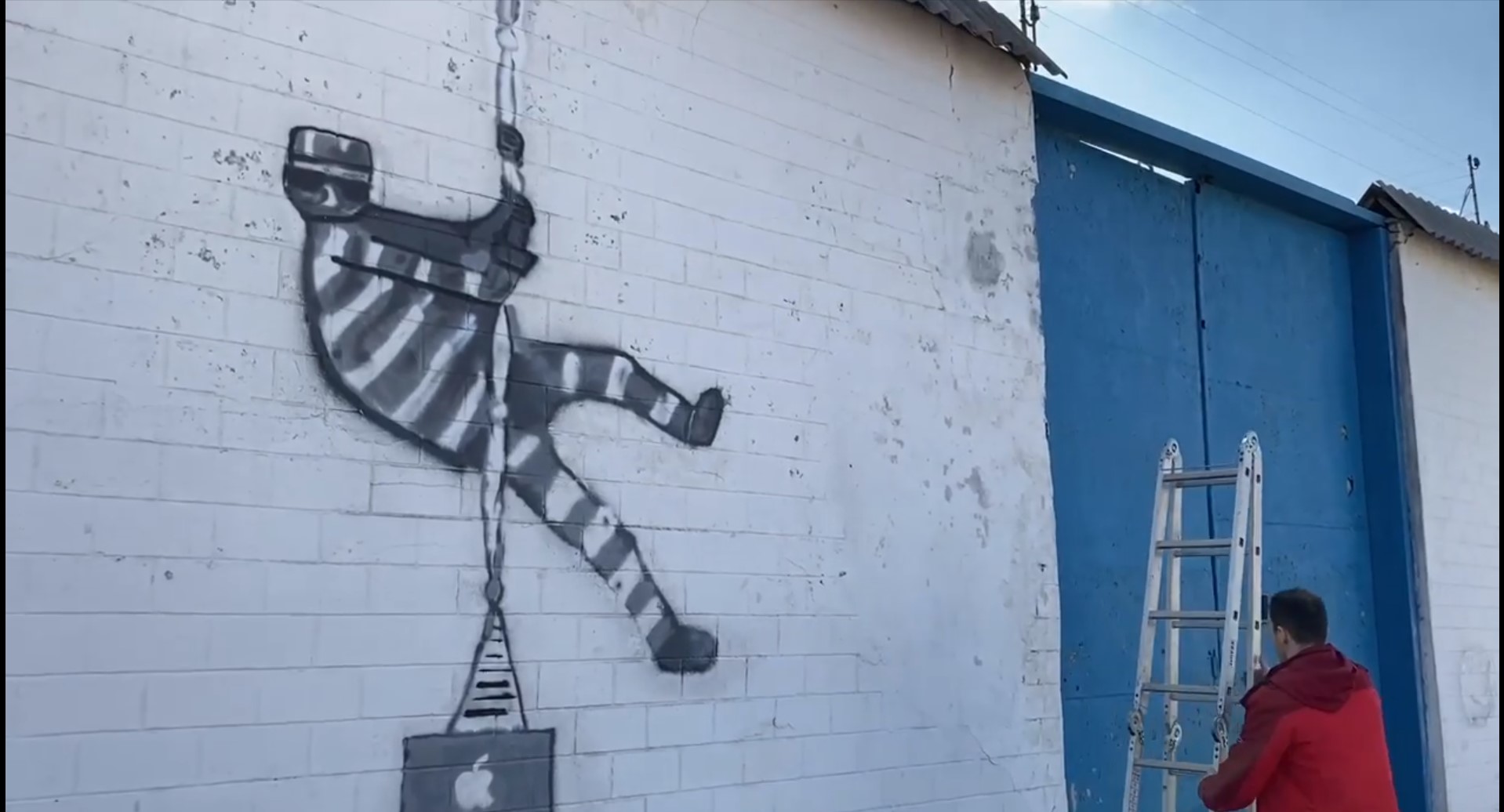 Министр юстиции Украины Денис Малюська попробовал повторить работу британского художника Бэнкси, которую тот сделал в знаменитой Редингской тюрьме, и нарисовал ее копию на стене уже украинской тюрьмы, выставленной на продажу.
