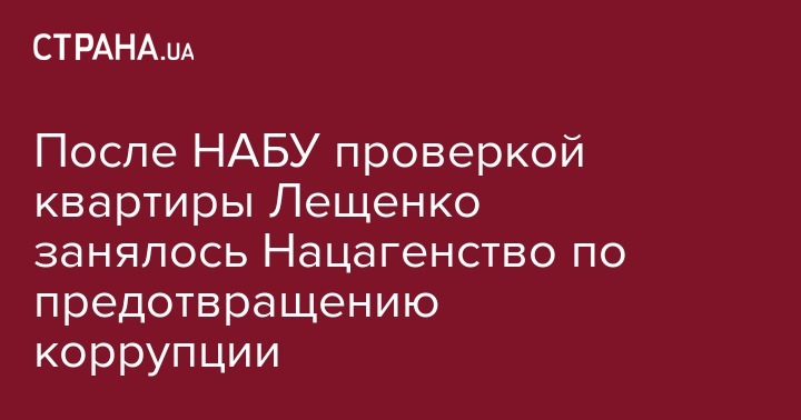 Национальное агентство по предотвращению коррупции (НАПК) получило от Национального антикоррупционного бюро Украины (НАБУ) материалы относительно покупки квартиры депутатом от фракции "Блок Петра Порошенко" Сергея Лещенко и начало проверку. Об этом сообщается на странице главы НАПК Натальи Корчак в Facebook.