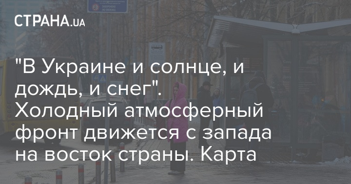 "В Украине и солнце, и дождь, и снег". Холодный атмосферный фронт движется с запада на восток страны. Карта