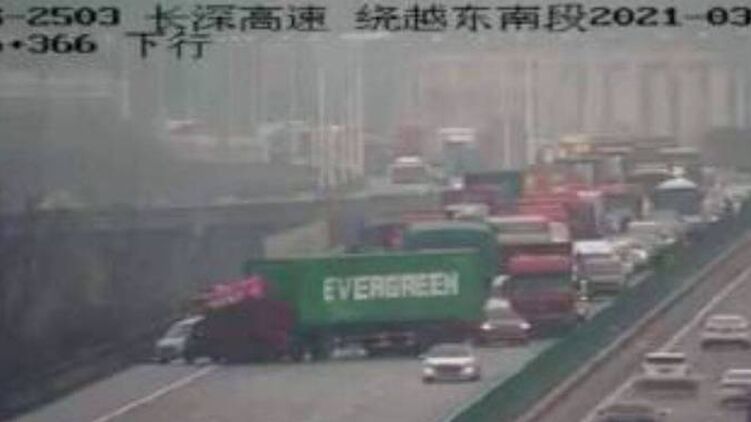 Грузовик с контейнером арендатора застрявшего в Суэцком канале судна заблокировал и трассу в Китае