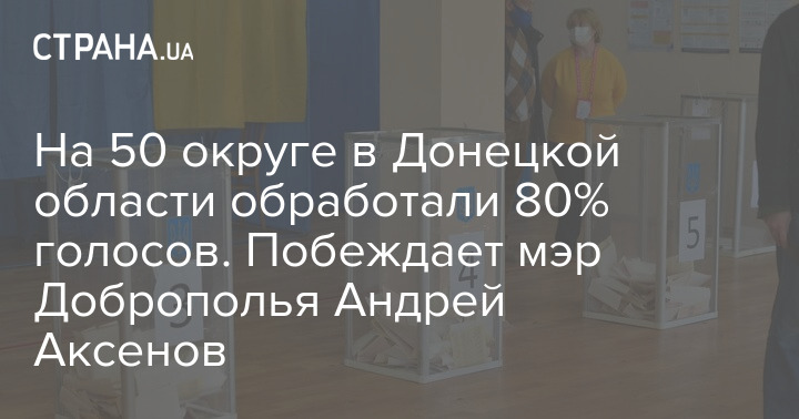 На 50 округе в Донецкой области обработали 80% голосов. Побеждает мэр Доброполья Андрей Аксенов