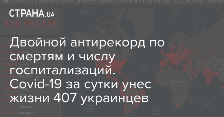 Умерло за сутки 407 пациентов. И это новый антирекорд по смертности, предыдущий был отмечен 25 марта 2021 года, когда за сутки умерло 362 человека.