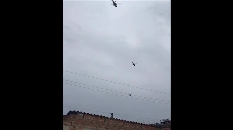 На одном из них запечатлены военные вертолёты которые, как сообщается, летают где-то в Ростовской области неподалёку от границы.