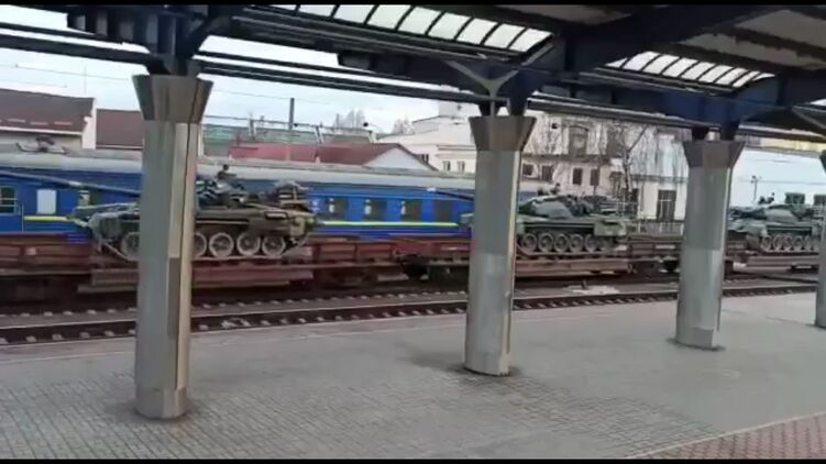 На фоне сообщений о передвижении войск РФ у границы с Украиной в сети начали появляться видео, как эшелоны с украинскими танками едут на Донбасс.