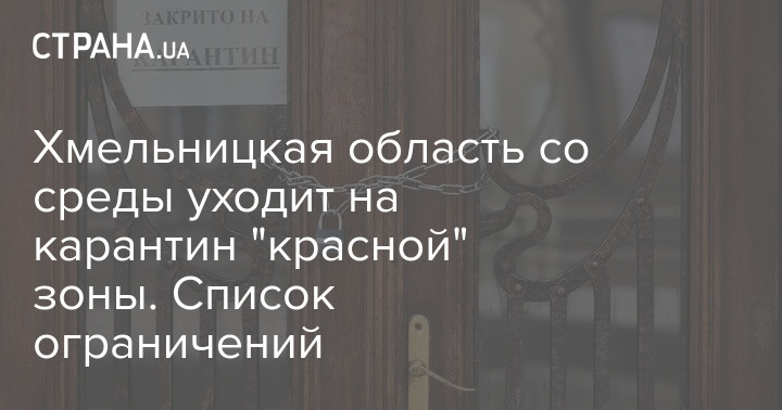 Хмельницкая область со среды уходит на карантин "красной" зоны. Список ограничений