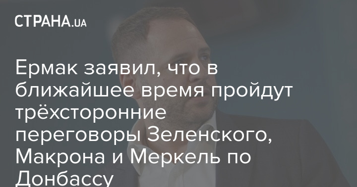 Ермак заявил, что в ближайшее время пройдут трёхсторонние переговоры Зеленского, Макрона и Меркель по Донбассу