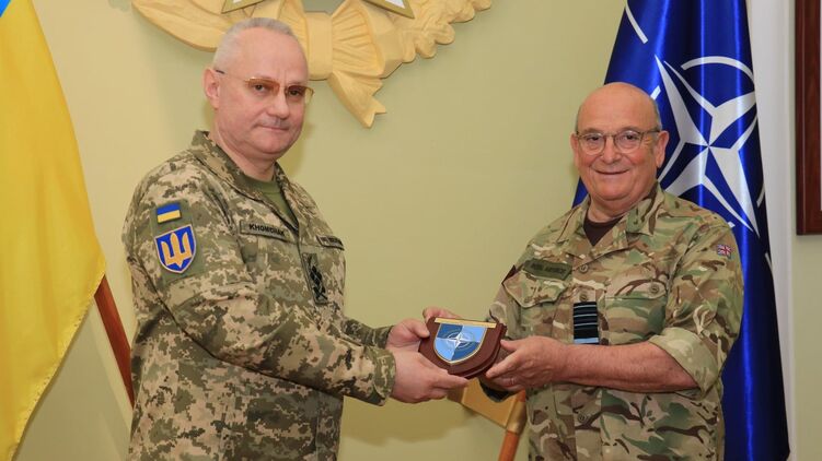 Главнокомандующий Вооруженных сил Украины генерал-полковник Руслан Хомчак провел встречу с главой Военного комитета НАТО главным маршалом авиации Стюартом Пичем в Национальной академии сухопутных войск им. гетмана Петра Сагайдачного.