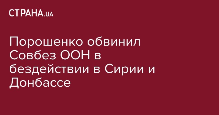 Порошенко отметил, что Совет Безопасности ООН не смог остановить конфликт в Сирии так же, как российскую агрессию в Украине и аннексию Крыма. Президент Украины подчеркнул, что Россия в Сирии применяет такую же тактику, как и в Украине: поддерживает усиление боевых действий, чтобы потом выступить посредником в конфликте и диктовать свои условия.