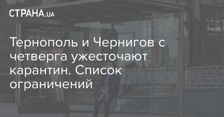 Тернополь и Чернигов с четверга, 8 апреля, ужесточают карантинные меры. Ограничения коснутся массовых мероприятий, работы учреждений культуры и заведений общепита.