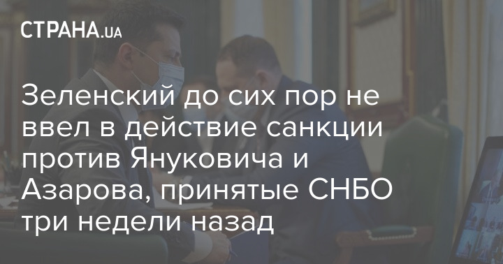 Президент Украины Владимир Зеленский до сих пор не подписал указ о введении санкций, принятых Советом национальной безопасности и обороны 19 марта в отношении экс-премьер министра Николая Азарова, бывшего главы государства Виктора Януковича и других лиц.
