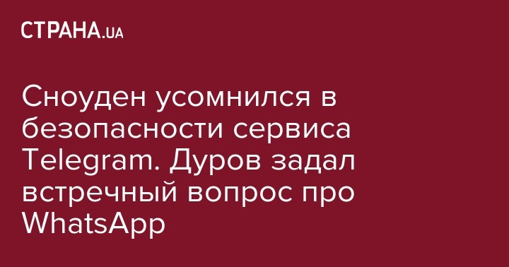 Бывший аналитик АНБ США и разоблачитель глобальной программы слежке PRSIM Эдвард Сноуден усомнился в конфиденциальности и безопасности для пользователей набирающего популярность интернет-мессенджера Telegram. В свою очередь, создатель Telegram'а Павел Дуров задал борцу за интернет-приватность встречный вопрос про безопасность аналогичного сервиса WhatsApp, сообщает ГазетаРу.