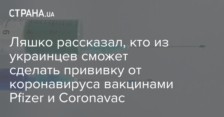 Главный государственный санитарный врач Виктор Ляшко рассказал, кто из украинцев сможет сделать прививку вакцинами Pfizer и Coronavac.