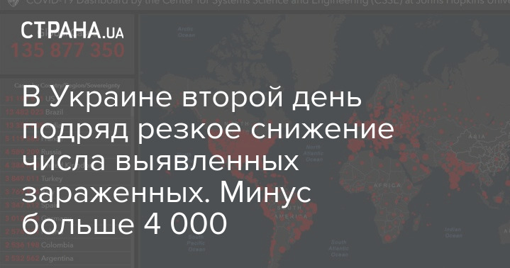 В Украине второй день подряд резкое снижение числа выявленных зараженных. Минус больше 4 000