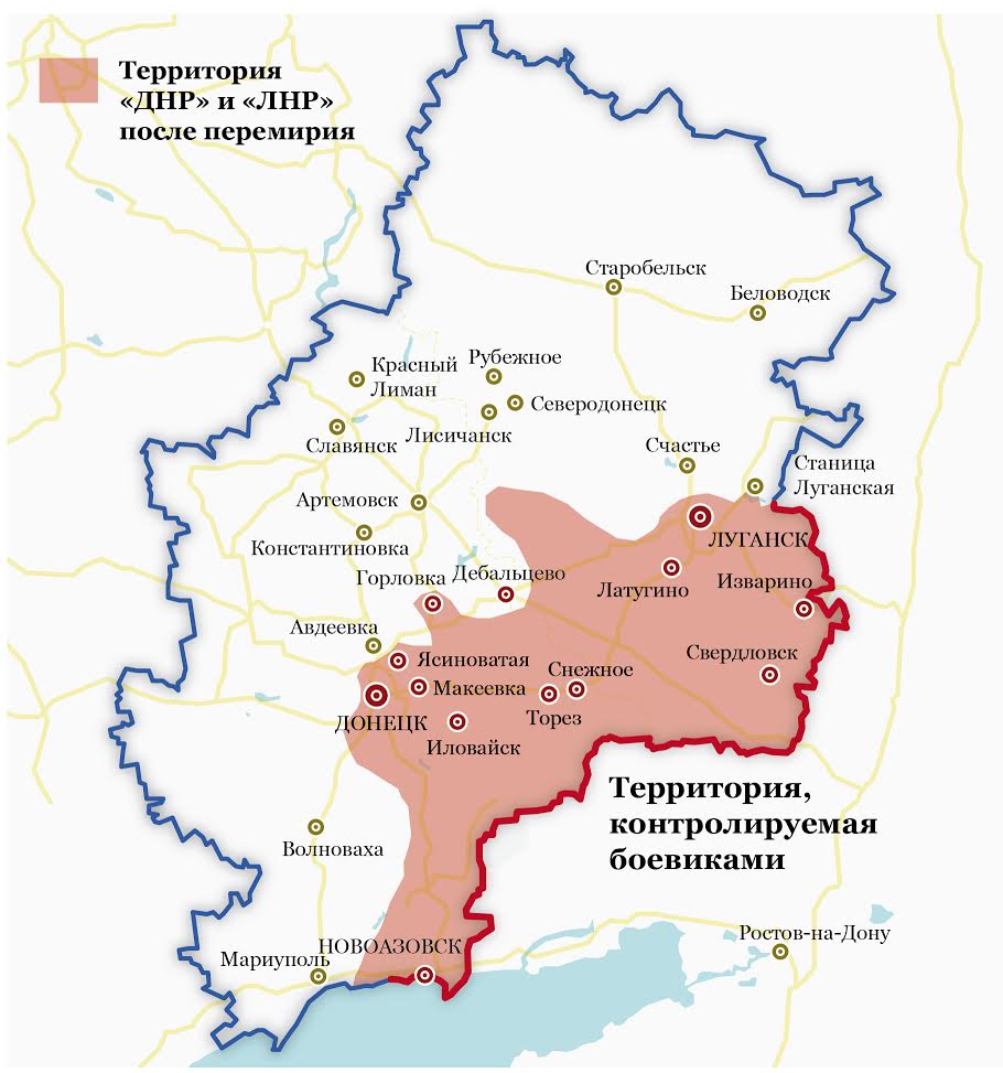 Он был окончательно ликвидирован в начале сентября. И через несколько дней Порошенко подписал первые Минские соглашения. В них были зафиксированы границы "республик" на момент окончания боев. К тому моменту сепаратисты перешли в наступление и захватили территории на юге до Новоазовска.