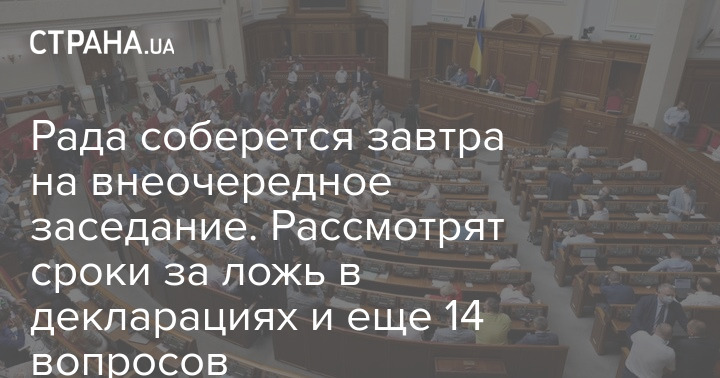 Рада соберется завтра на внеочередное заседание. Рассмотрят сроки за ложь в декларациях и еще 14 вопросов