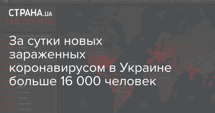 За сутки новых зараженных коронавирусом в Украине больше 16 000 человек