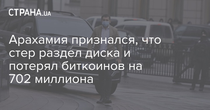 Арахамия признался, что стер раздел диска и потерял биткоинов на 702 миллиона
