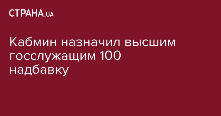 "Установить премию по результатам оценки служебной деятельности и месячную или квартальную премию государственным служащим, занимающим должности государственной службы категории "А" и назначенным Кабинетом Министров Украины, в размере до 100 процентов должностного оклада", - говорится в постановлении.