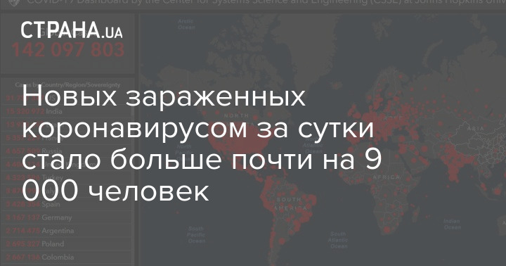 По данным на 20 апреля, число зараженных на Земле перевалило за 142 миллиона, фото: университет Дж. Хопкинса
