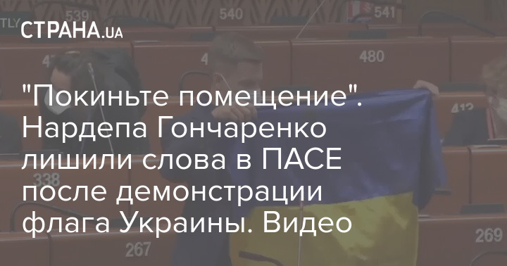 Во вторник, 20 апреля, народный депутат от "Евросолидарности" Алексей Гончаренко во время выступления на Парламентской ассамблее Совета Европы (ПАСЕ) достал простреленный на Донбассе флаг Украины, после чего ему выключили микрофон и лишили слова.