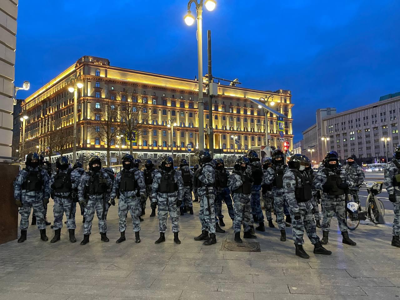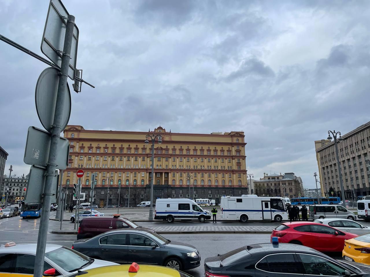 17:50 Лубянская площадь, где находится офис ФСБ, открыта. Дежурят полицейские.