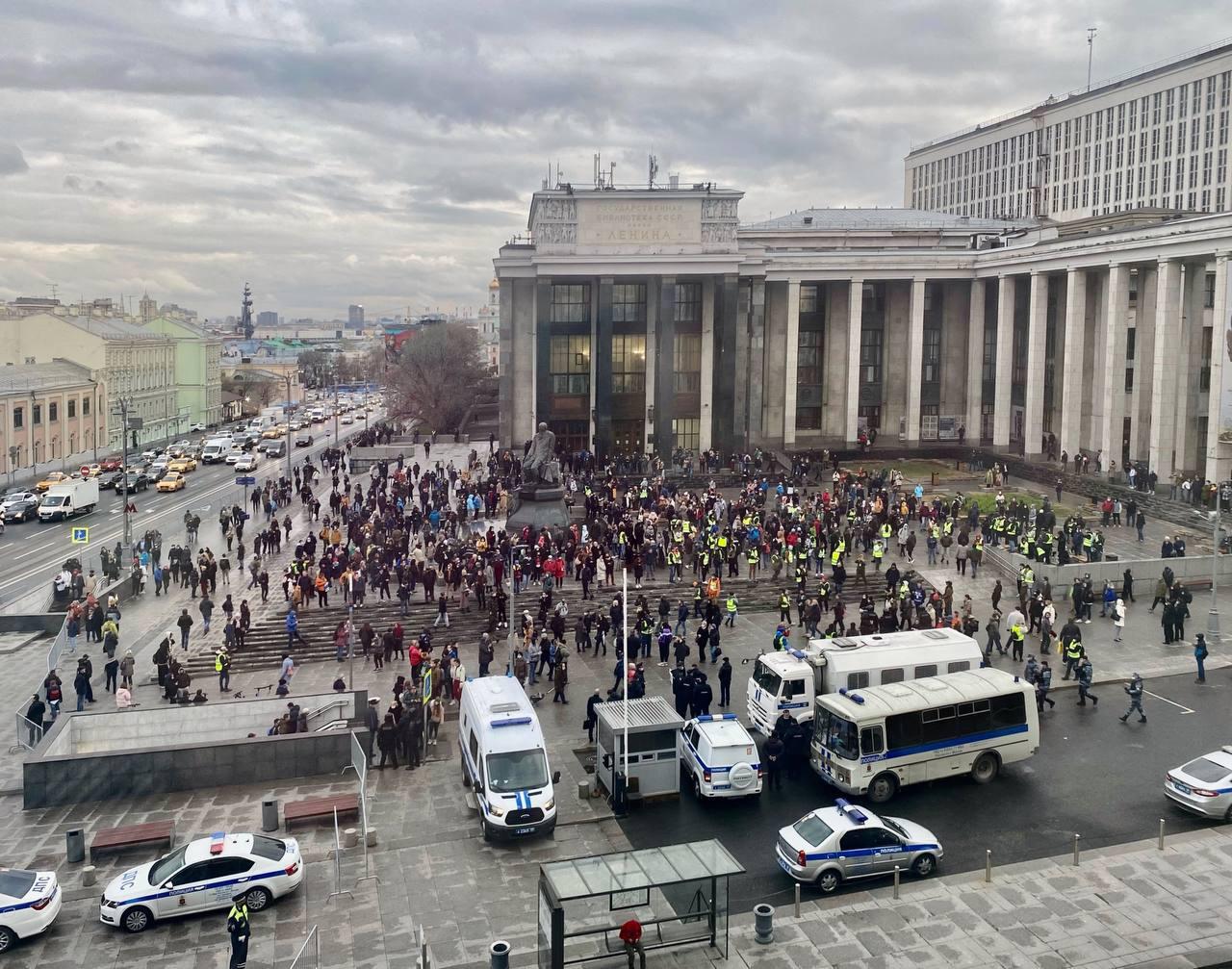 На первых зимних митингах туда пускали, люди несколько часов скандировали лозунги и были точечные задержания. Сейчас же на обоих точках (и на Манежной площади) даже не представляется возможность просто собраться группой.