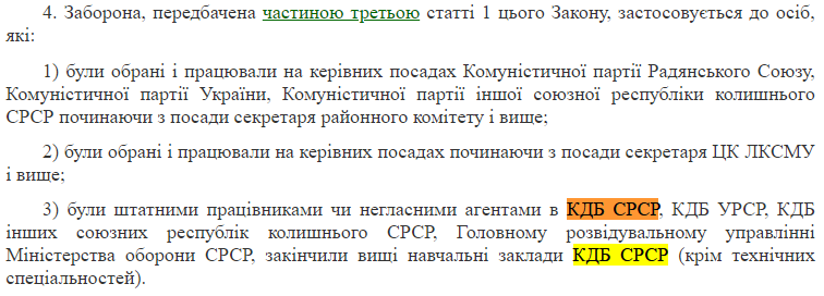 Под люстрацию действительно подпадают те люди, кто закончил высшие учебные заведения КГБ СССР.