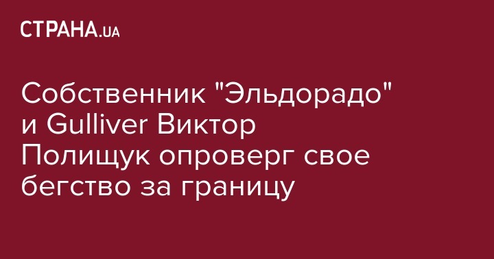 Виктор Полищук, собственник банка "Михайловского", который обанкротился, а также владелец сети по продаже бытовой техники и электроники "Эльдорадо" и крупнейшего в Киеве офисного центра Gulliver, не сбежал за границу. Об этом "Стране" сказала пресс-секретарь киевской прокуратуры Надежда Максимец, комментируя озвученную ранее прокуратурой информацию, что Полищук сбежал из Украины.