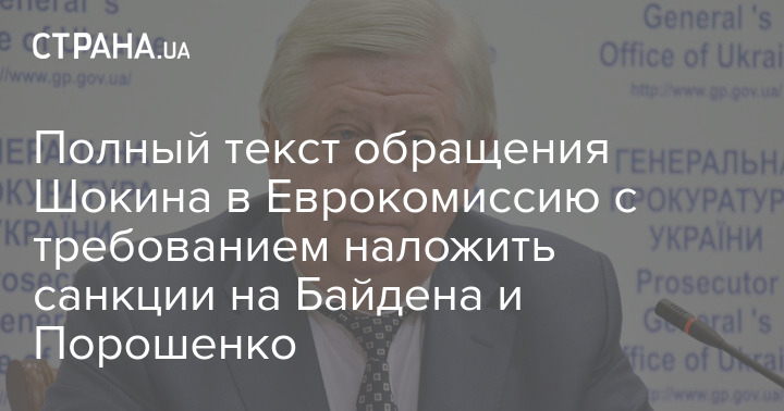 Полный текст обращения Шокина в Еврокомиссию с требованием наложить санкции на Байдена и Порошенко