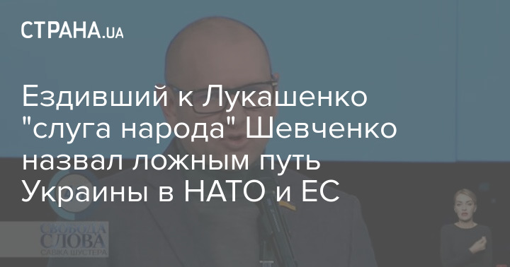 "Мы живем лживыми надеждами, которые внушили себе и которые внушаем людям. Я сейчас про что? Я сейчас про путь. Путь в Европейский союз, путь в НАТО - хороший путь, я только за, я за это. Но я знаю, я уверен, что это ложный путь, потому что и там, и там - стена. Это все путь как на Луну. То есть мы когда-нибудь будем жить на Луне, будем жить хорошо. А народ устал ждать, народ хочет жить сейчас", - полагает Шевченко.