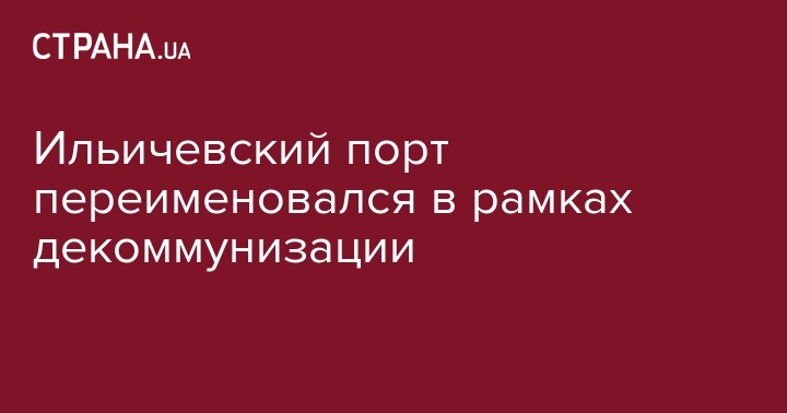 Государственное предприятие "Ильичевский морской торговый порт" был переименован в ГП "Морской торговый порт "Черноморск". Как сообщает пресс-служба порта, такое решение было принято в рамках закона о декоммунизации.