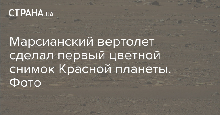 Марсианский вертолет Ingenuity, который недавно совершил полет над поверхностью Красной планеты, прислал первую цветную фотографию с Марса во время второго полета в атмосфере.