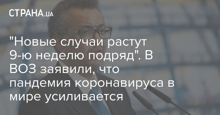 Генеральный директор Всемирной организации здравоохранения (ВОЗ) Тедрос Аданом Гебрейесус заявил, что пандемия Сovid-19 в мире усиливается. Кроме того, по его словам, шестую неделю подряд наблюдается рост количества новых смертей от болезни.