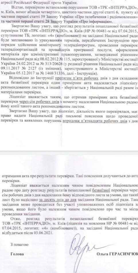 - пункта а) части первой статьи 59 Закона Украины "О телевидении и радиовещании" (Телерадиоорганизация обязана придерживаться законодательства Украины и требований лицензии);