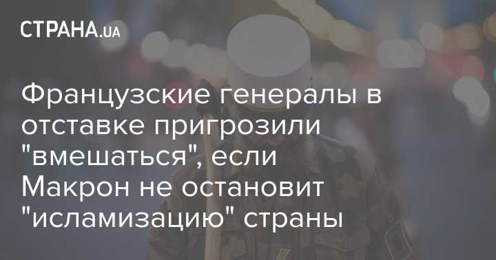 Около двадцати отставных французских генералов обратились с письмом к президенту Эммануэлю Макрону, правительству и парламенту страны с требованием не допустить гражданскую войну, которая, по их мнению, может наступить в условиях дальнейшей "исламизации" государства.