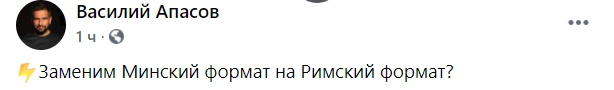 "Заменим Минский формат на Римский формат?" - комментирует журналист Василий Апасов.