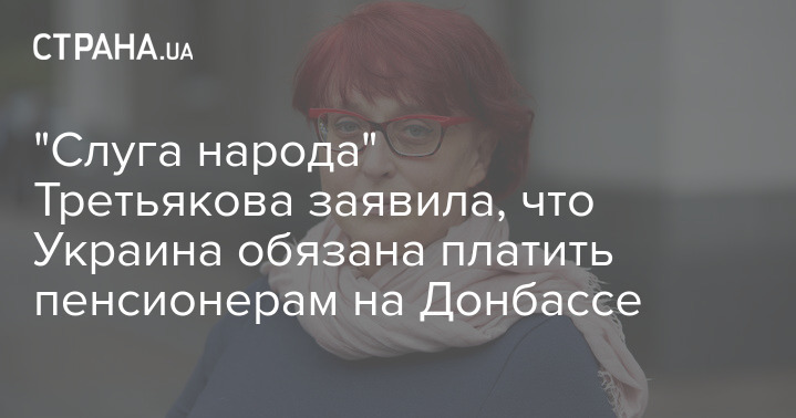 Глава комитета Верховной Рады по вопросам социальной политики из фракции "Слуга народа" Галина Третьякова заявила, что Украина должна платить пенсионерам на неподконтрольных территориях Донбасса.