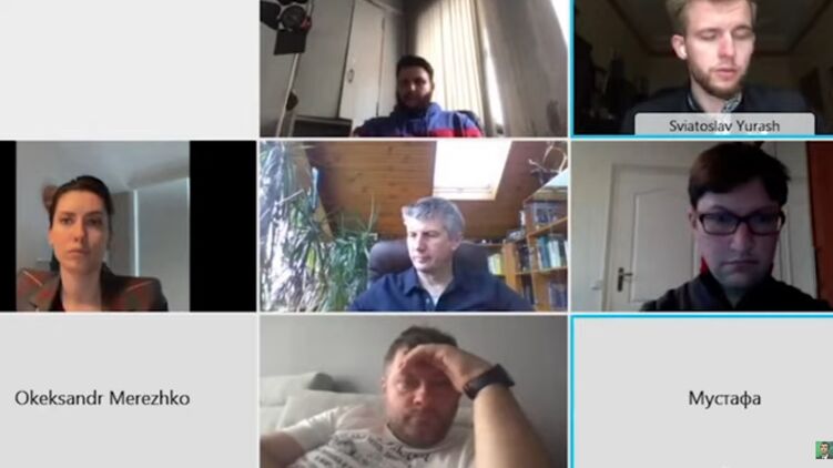 В середине дискуссии пранкер предложил всем вместе спеть украинский гимн, и участники видеоконференции дружно затянули его.