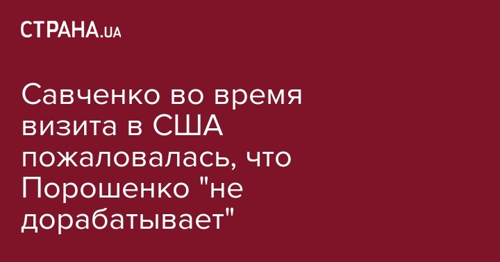 Савченко во время визита в США пожаловалась, что Порошенко "не дорабатывает"