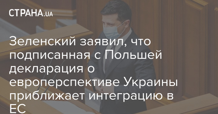Зеленский заявил, что подписанная с Польшей декларация о европерспективе Украины приближает интеграцию в ЕС
