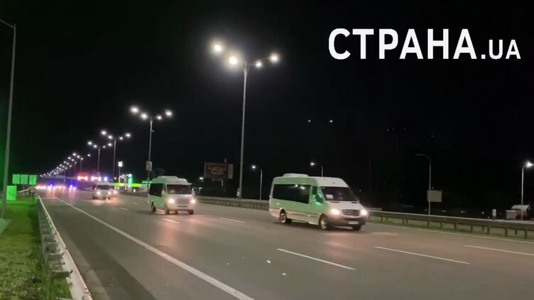 Кортеж проехал по пустому Бориспольскому трассе в направлении Киева. Во главе колонны и в хвосте двигались автомобили с проблесковыми маячками.