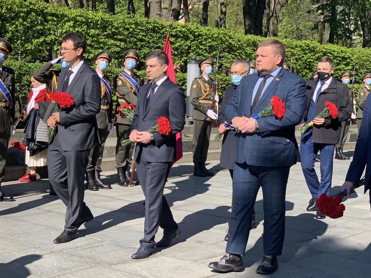 09:07 В Парк Славы потянулись депутаты. Приехало руководство парламента - спикер Разумков и его зам Стефанчук.