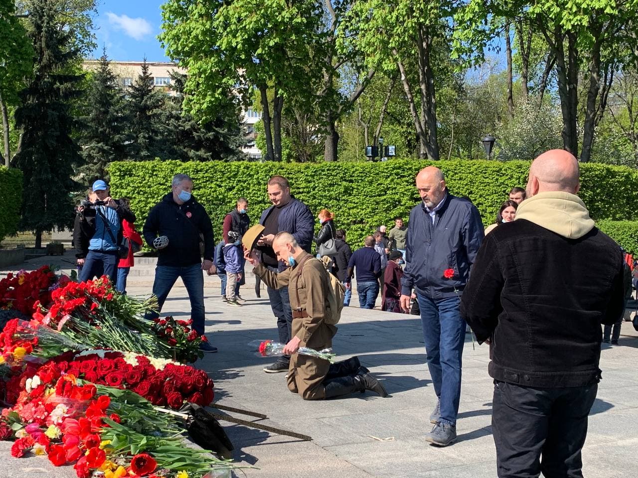 10:57 Конфликт около вечного огня. Парень и девушка в вышиванках завязали перепалку с людьми, которые пришли возложить цветы. Обвинили их в том, что те "гордятся Советским Союзом". Другие люди их, мягко говоря, не поняли.