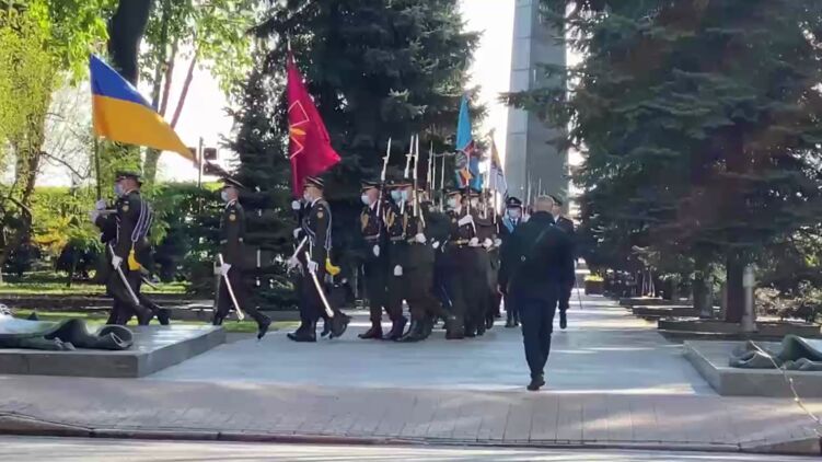 Президент Украины Владимир Зеленский торжественно возложил цветы к мемориалу в честь 9 мая. Фото: Страна