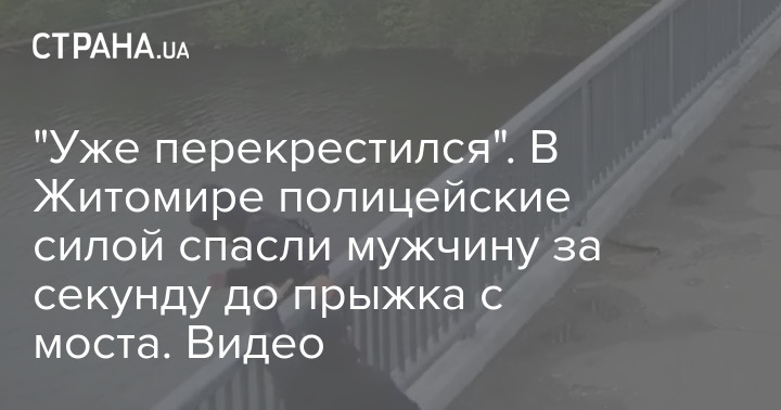 "Уже перекрестился". В Житомире полицейские силой спасли мужчину за секунду до прыжка с моста. Видео