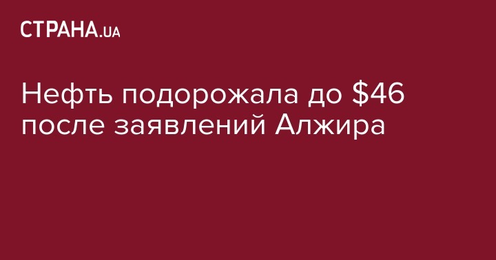 В понедельник, 26 сентября, нефть подорожала до $46 после заявлений министра энергетики Алжира, который ожидает прогресса на переговорах нефтедобывающих стран. Об этом сообщает "Интерфакс".